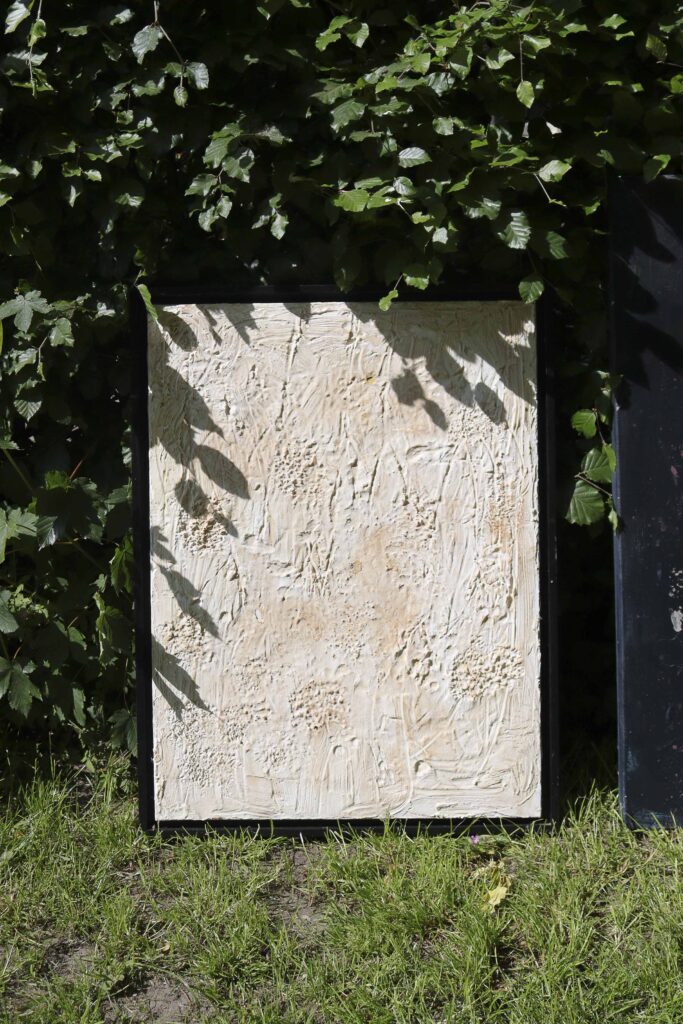 Monique van gemert Smulders,,’ Human landscape’, Mixed media op houten paneel 1,50 / 1m, april/mei 2019.Serie Maakbaar.