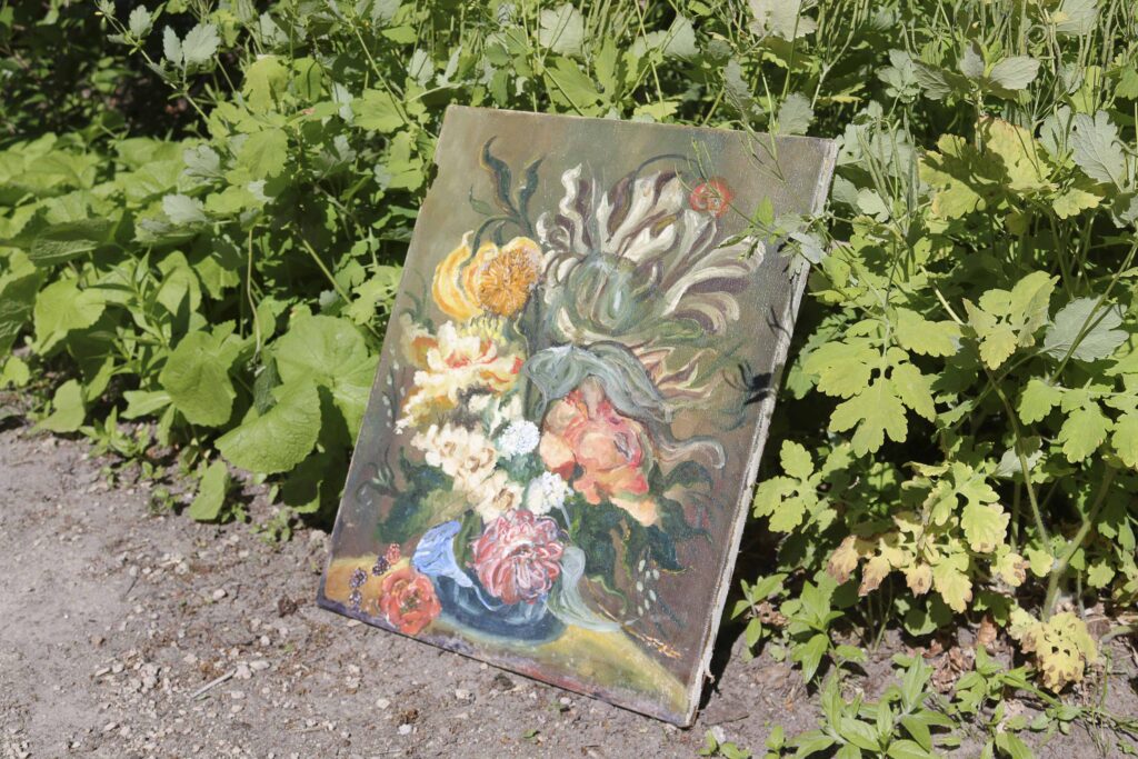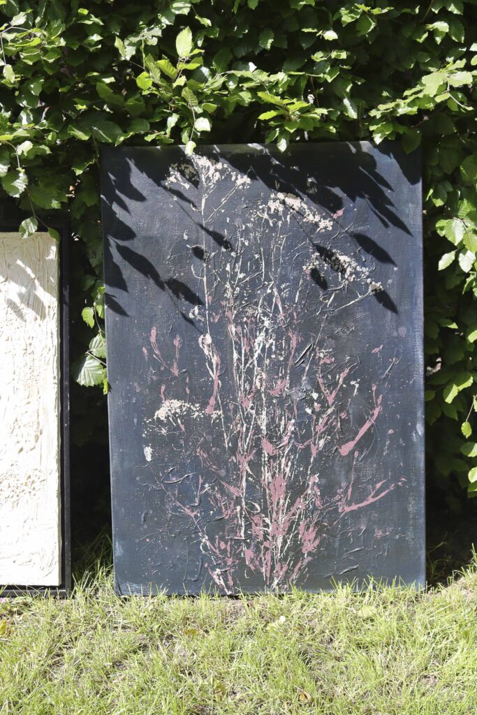 Mixed media op een drager van een zelfgemaakt houten paneel 1,50 / 1m, april/mei 2019.